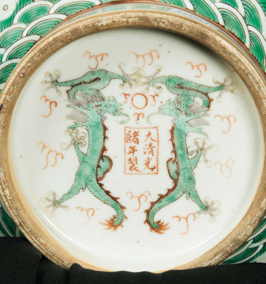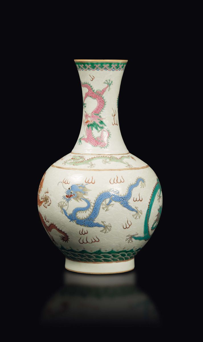 A polychrome glazed porcelain vase with a decor of dragons among the clouds, China, Qing Dynasty, Guangxu period (1875-1908)