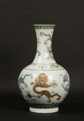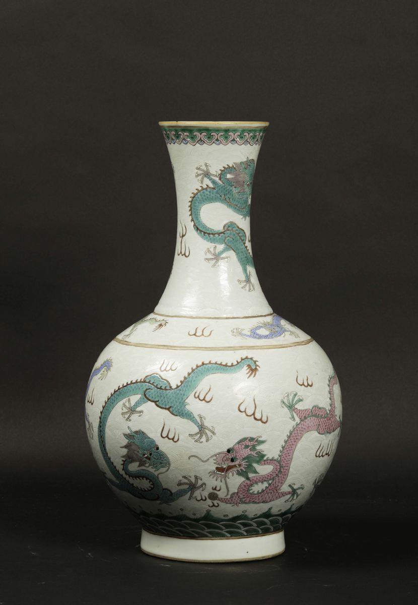 A polychrome glazed porcelain vase with a decor of dragons among the clouds, China, Qing Dynasty, Guangxu period (1875-19 [..]