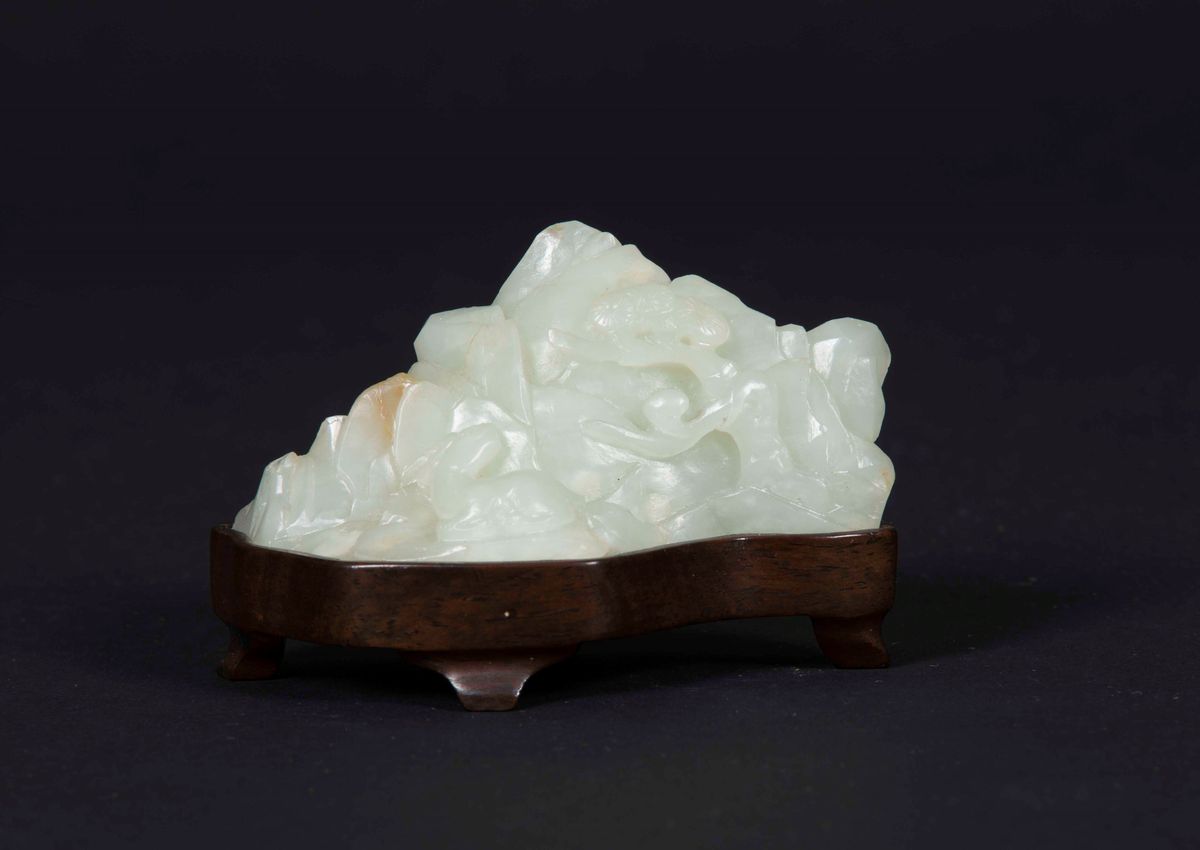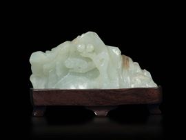 A small carved white jade mountain with blossoming trees, China, Qing Dynasty, 18th century