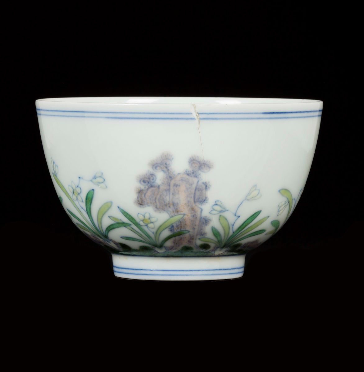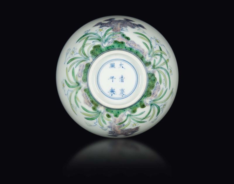 A small doucai porcelain bowl with a floral decor, China, Qing Dynasty, Kangxi period (1662-1722)