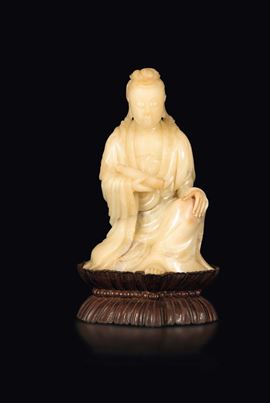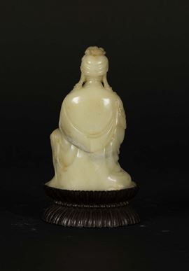 A soapstone group depicting a Guanyin with scroll, China, Qing Dynasty, 19th century