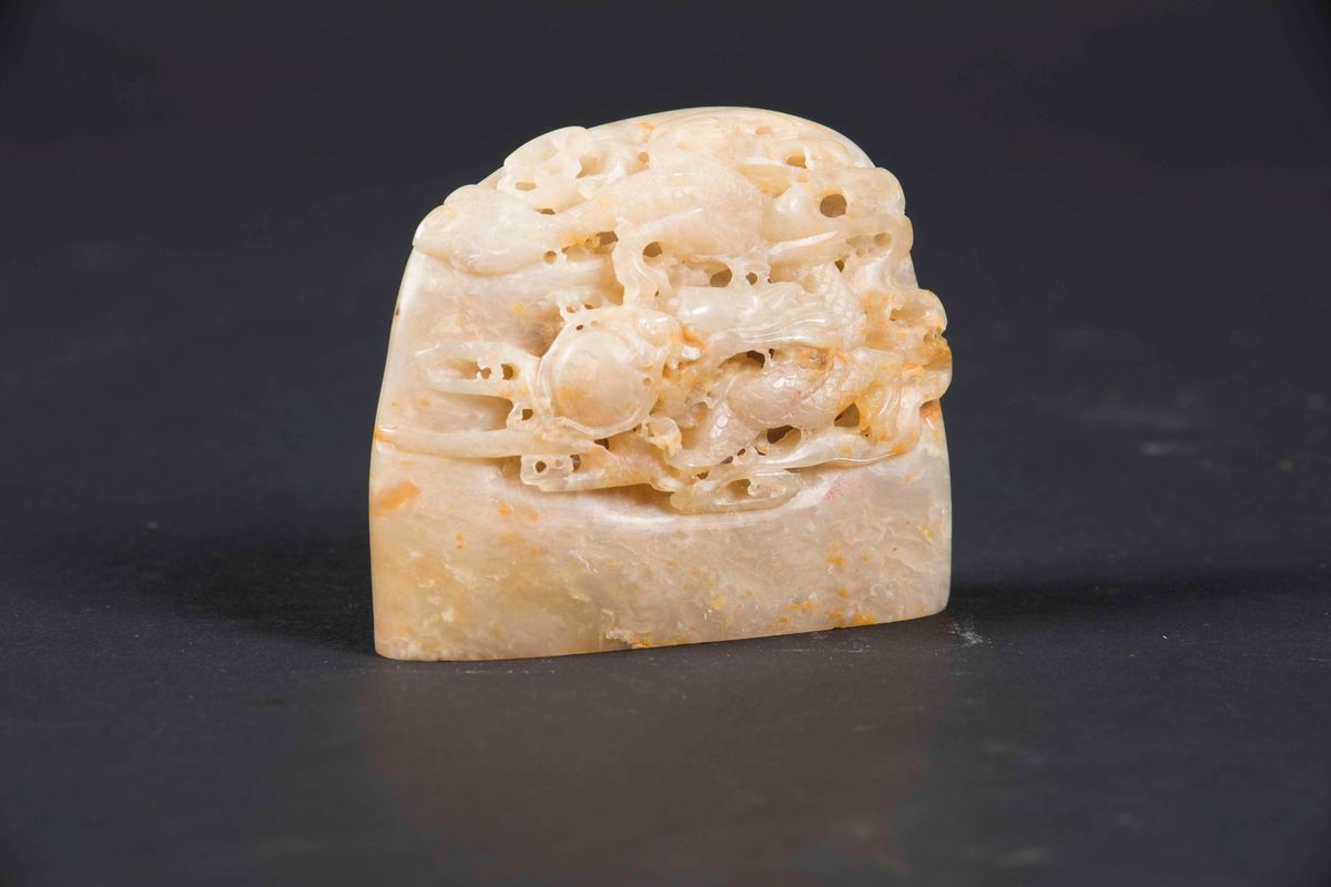 A soapstone seal with a dragon among the clouds, China, Qing Dynasty, late 18th century