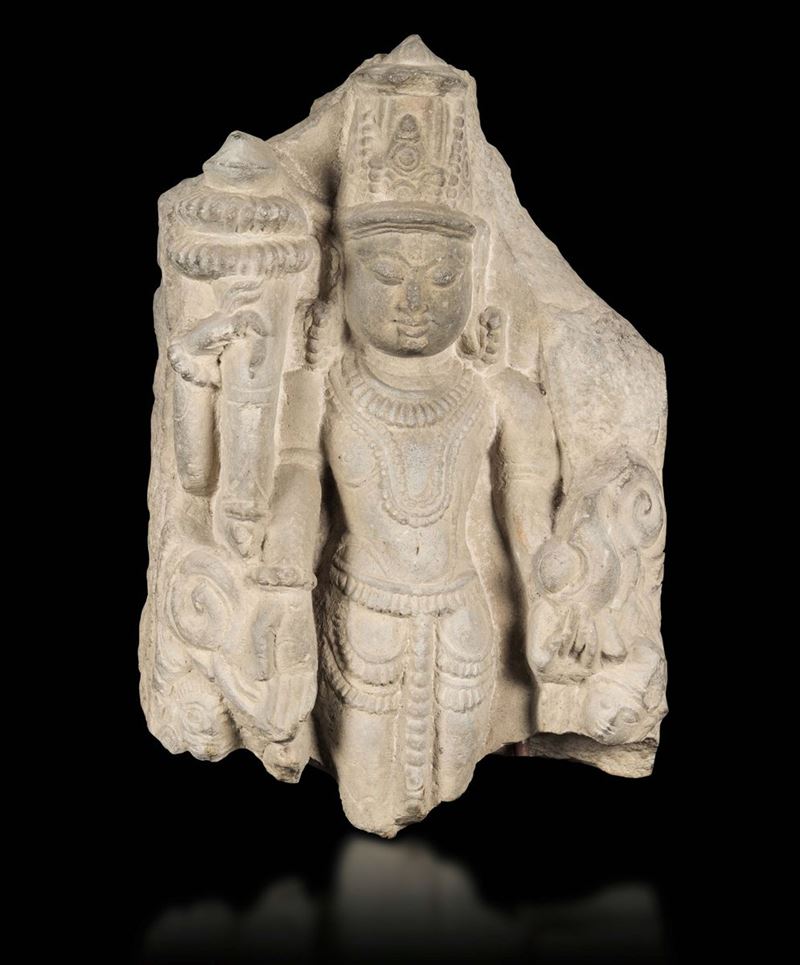 A stone stele with a figure of a standing deity, India, 9th-10th century