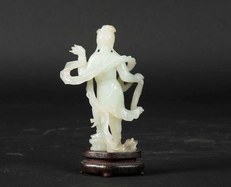 A white jade figure of Guanyin with shell, China, early 20th century