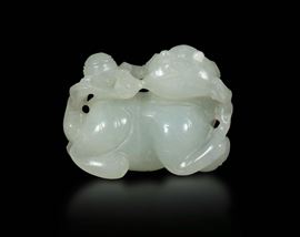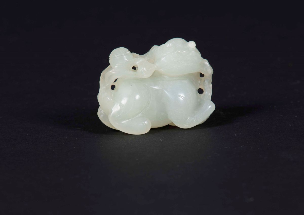 A white jade group depicting a fantasy animal, China, Qing Dynasty, 19th century