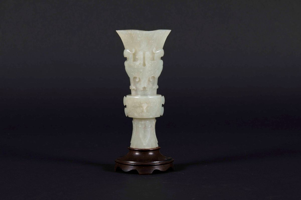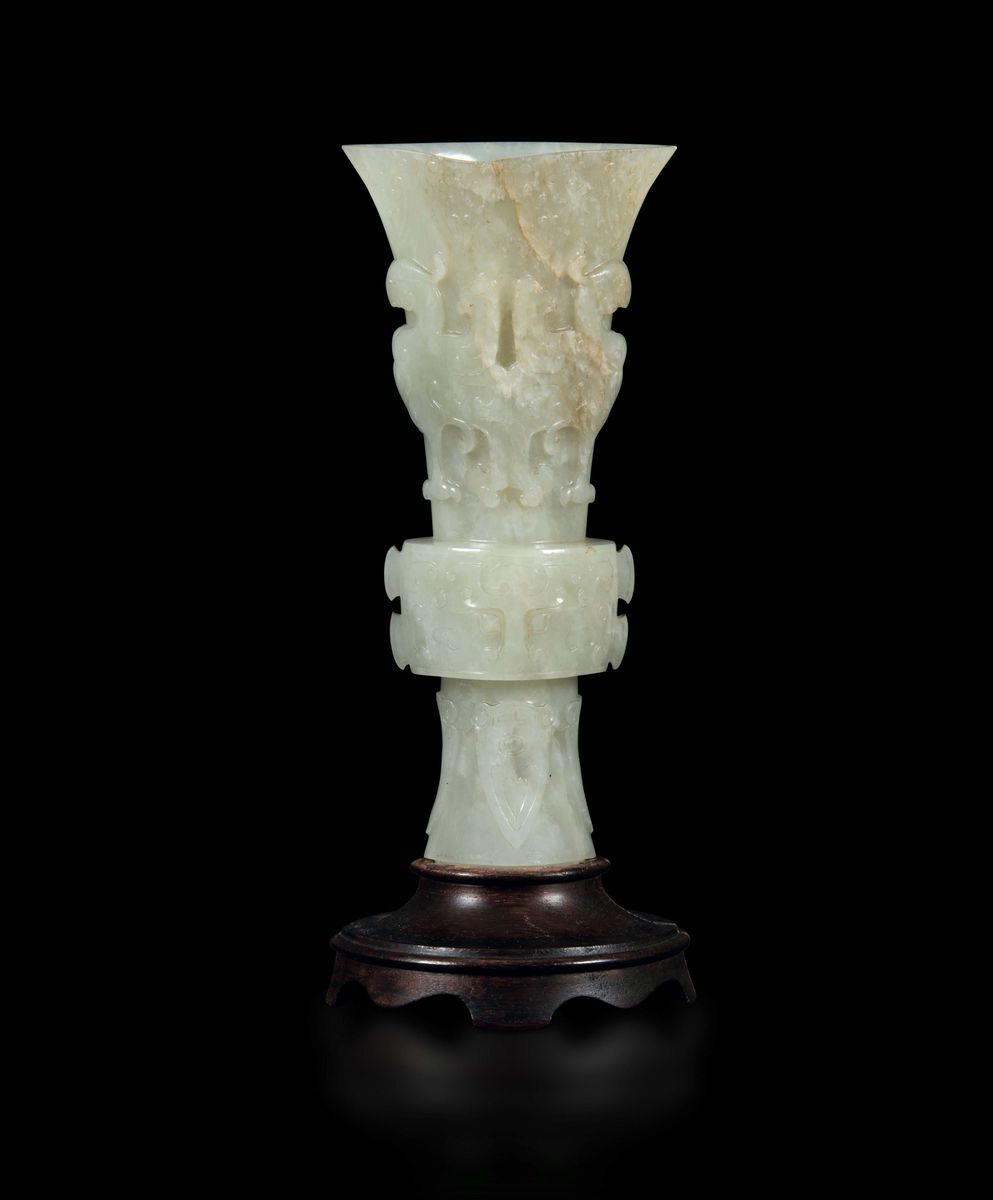 A white jade vase with an archaic decor, China, Qing Dynasty, Qianlong Period (1736-1796)