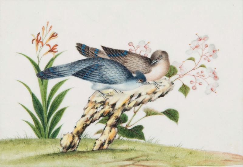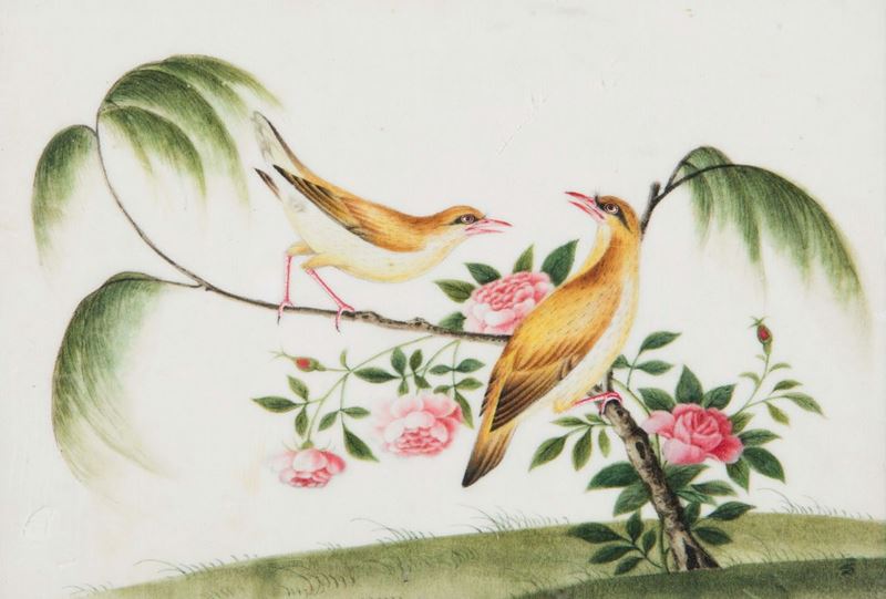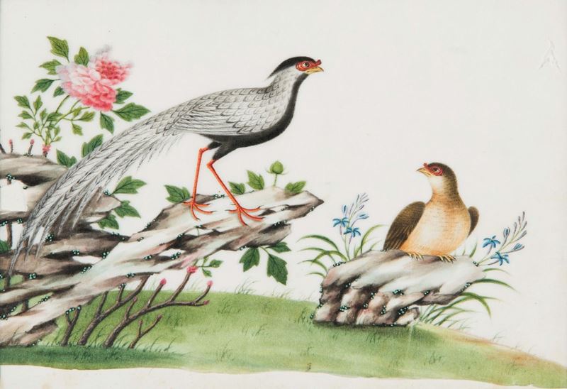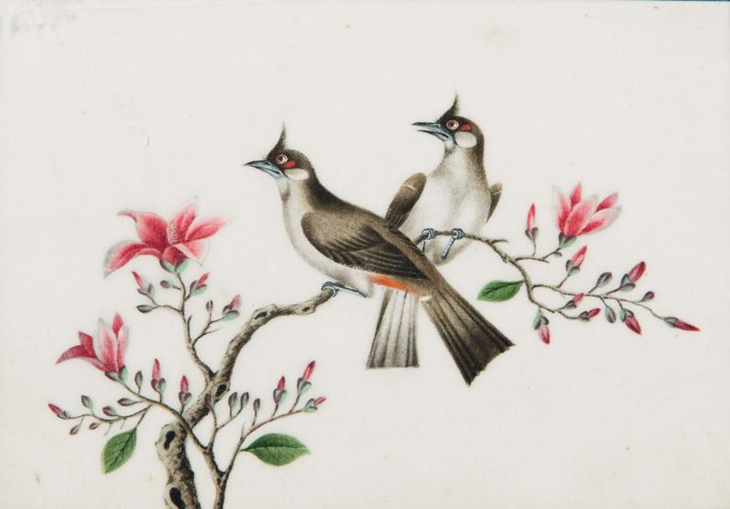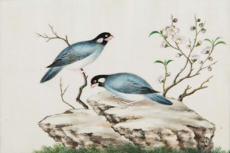 Eleven paintings on paper depicting birds within landscapes and on blossoming branches, China, Qing Dynasty, 19th century [..]