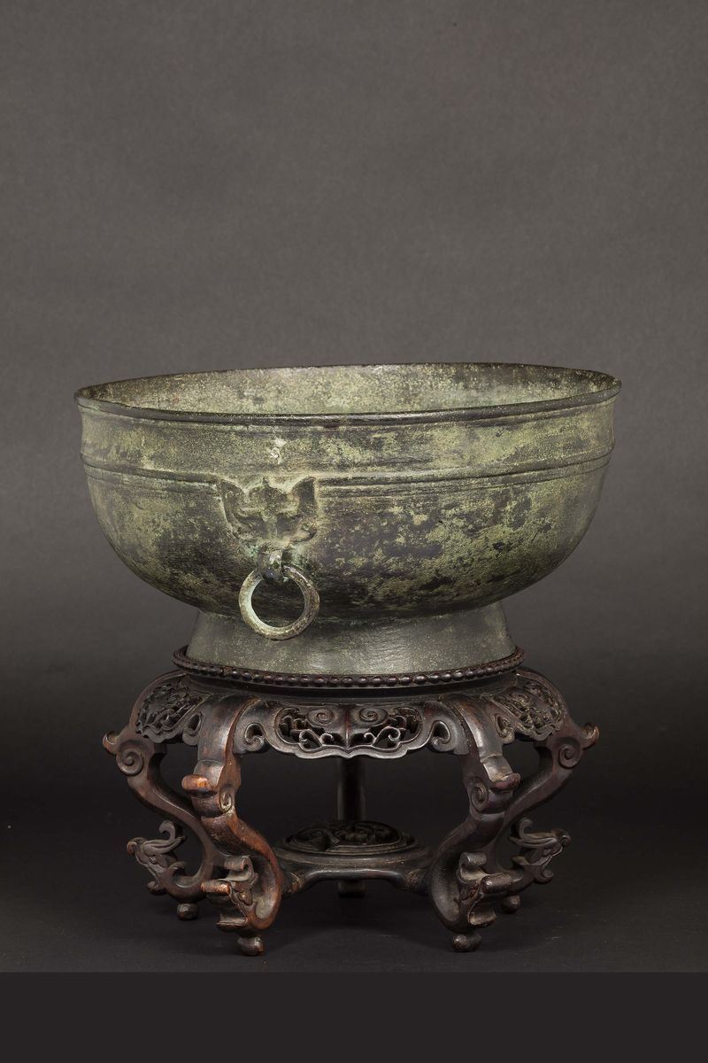 A bronze cup with a Taotie mask along the handles, China, Shang period (1750-1028 b.C.)