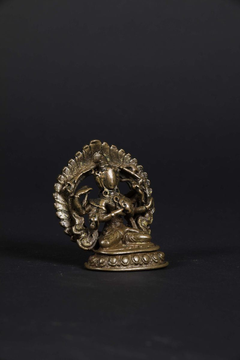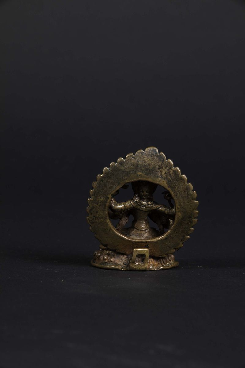 A bronze figure of Amitaya with aura seated on a lotus flower, Nepal, 11th century