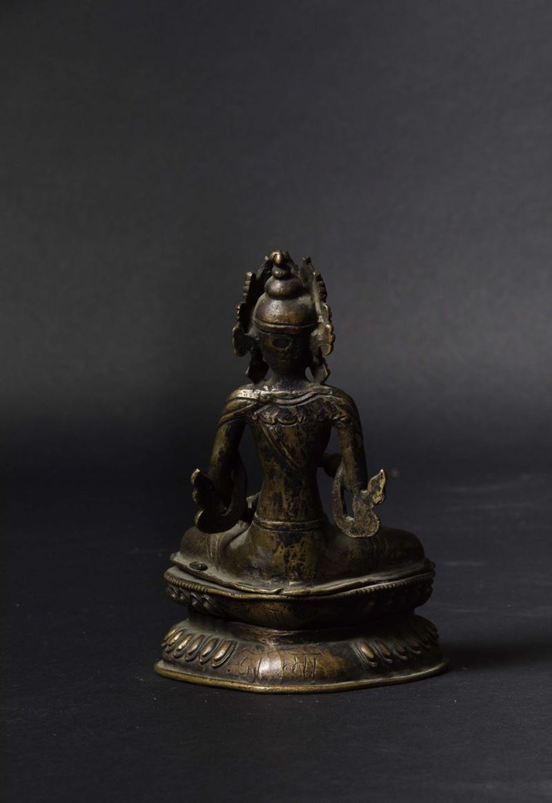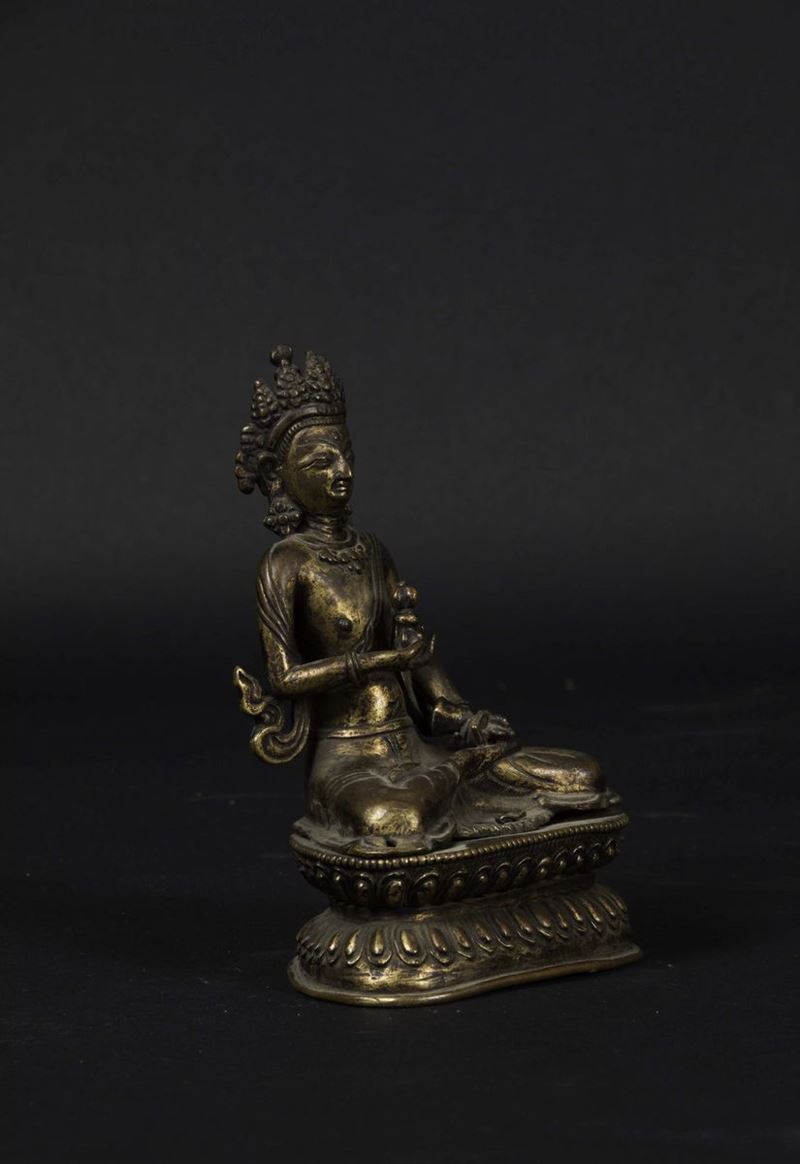 A bronze figure of Avalokitesvara seated on a double lotus flower, Tibet, 14th-15th century
