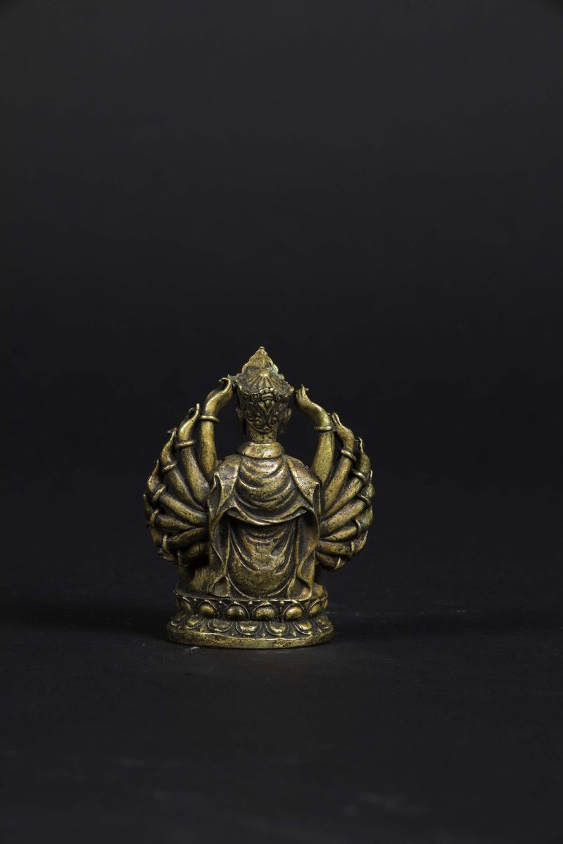 A bronze figure of Lama seated on a double lotus flower, Tibet, 16th century