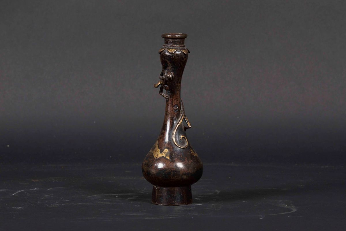 A semi-gilt bronze vase in the shape of a garlic head with an embossed dragon, China, Qing Dynasty, Kangxi period (1662-1 [..]