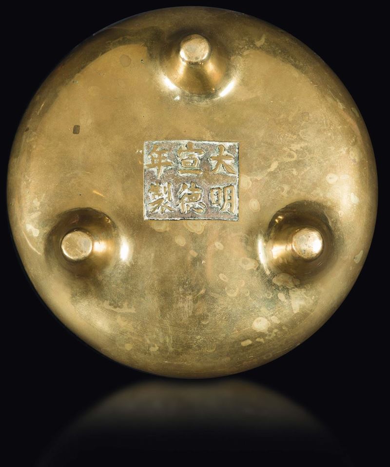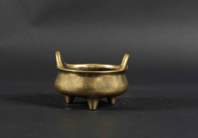 A tripodal bronze censer with handles, China, Qing dynasty, 19th century