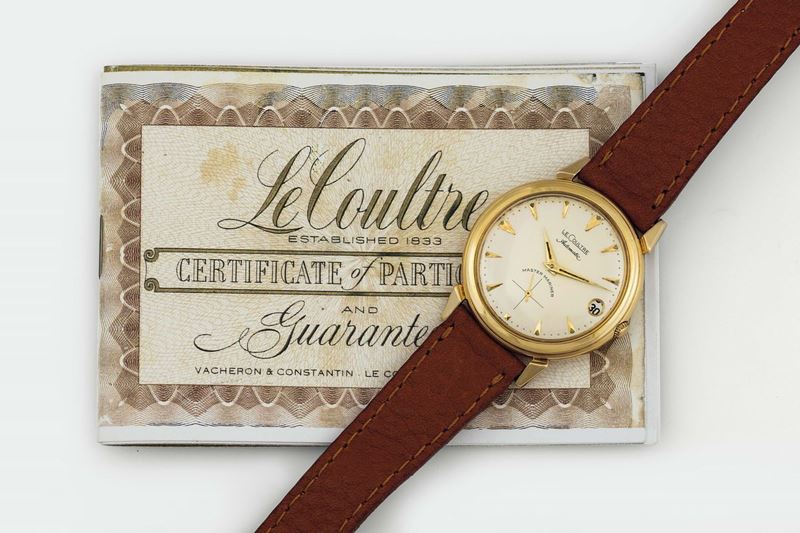 LeCoultre, Master Mariner. Fine, self winding, 14K yellow gold wristwatch with date and gold plated buckle. Accompanied [..]