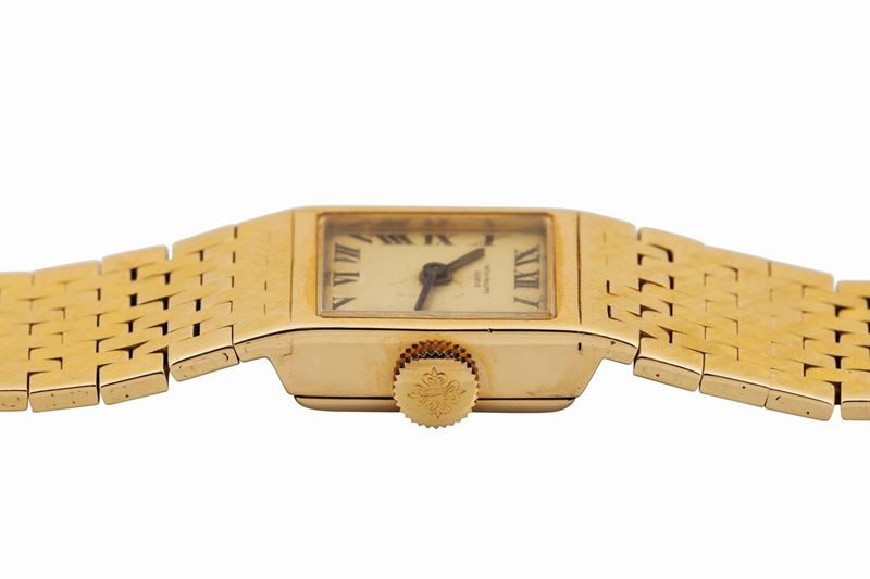 Patek Philippe & Cie, Genève, case No. 2620951, Ref. 3285 / 21. Fine, square, 18K yellow gold lady's wristwatch with an [..]