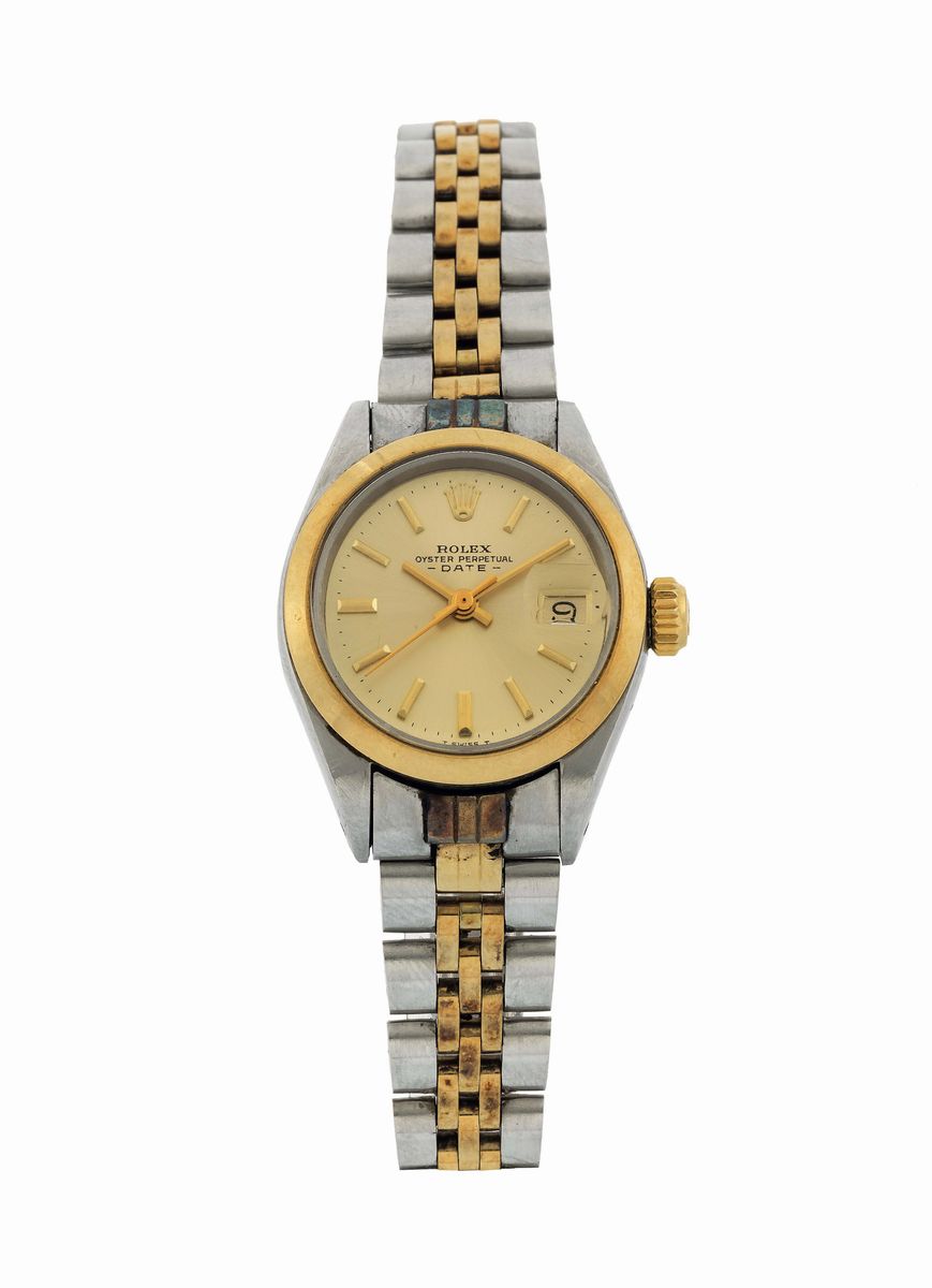 Rolex, Oyster Perpetual Date, Ref. 6916. Fine, self winding, water resistant, stainless steel and gold wristwatch with date [..]
