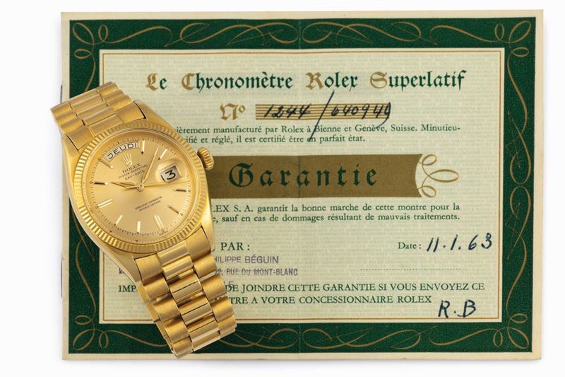 ROLEX, Oyster Perpetual, Day-Date, Superlative Chronometer Officially Certified, case No. 640949, Ref. 1803. Very fine and [..]
