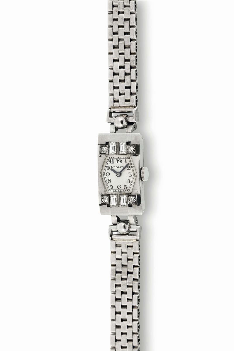 Rolex. Rare, platinum lady's wristwatch with 18K white gold bracelet. Made circa 1920. accompanied by the original box