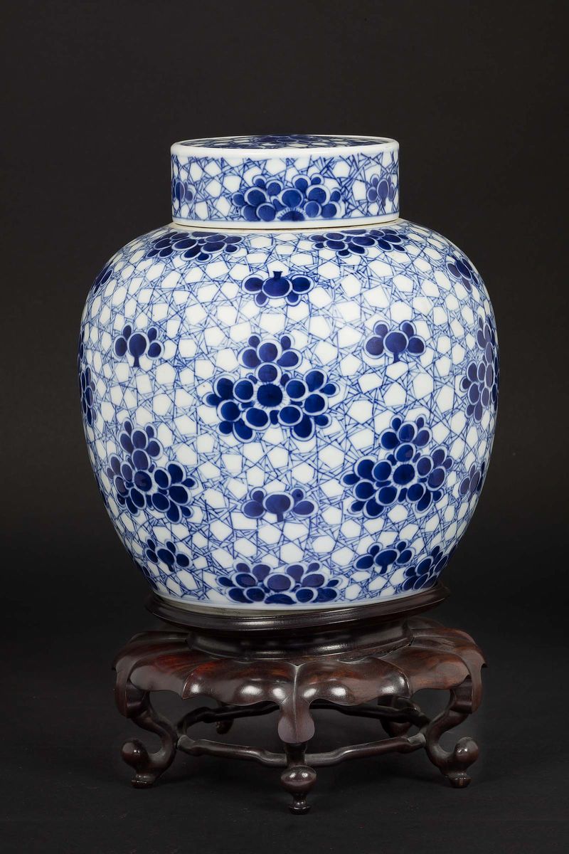 A blue and white porcelain potiche with a floral decor, China, Qing Dynasty, 19th century