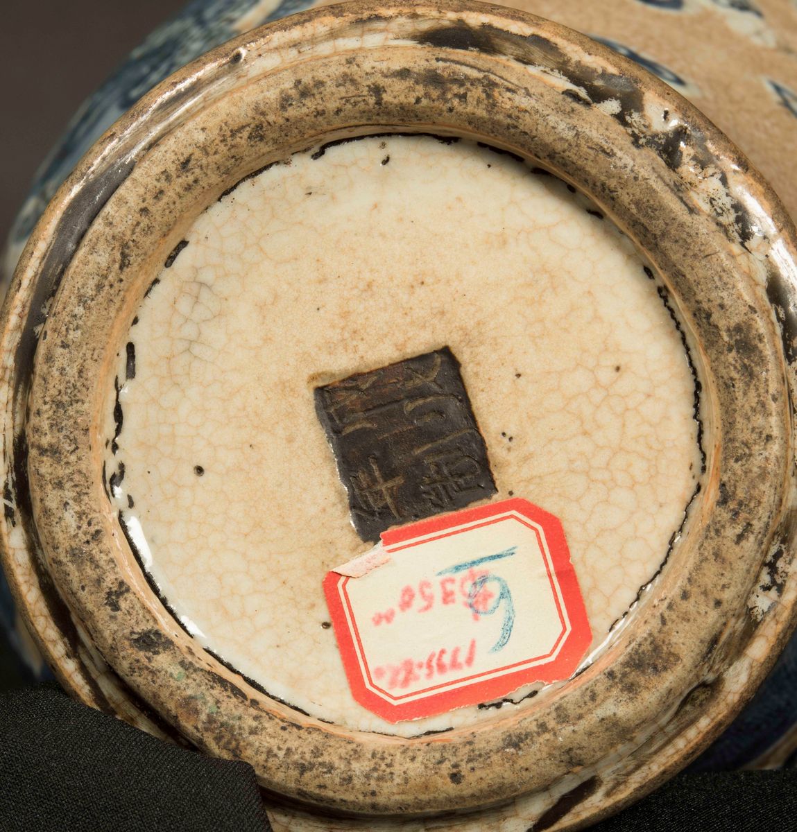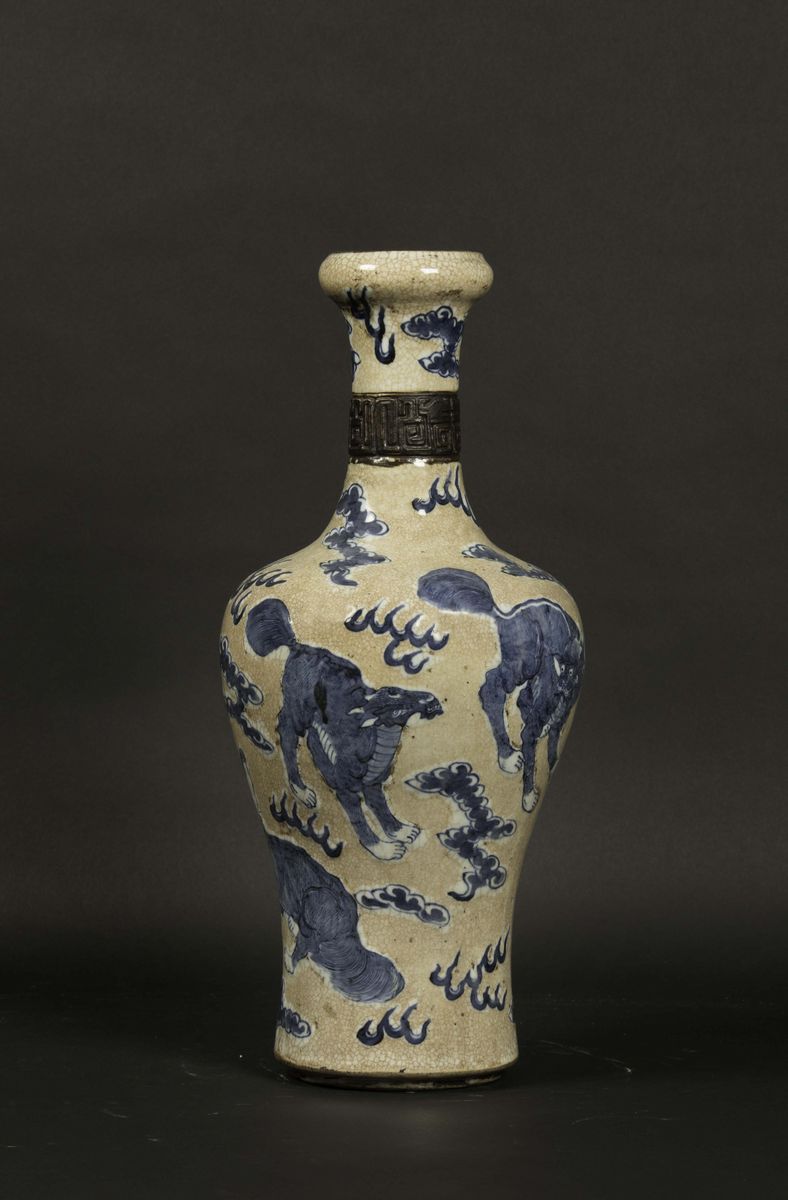 A craquelé porcelain vase with a blue and white decor of Pho dogs, China, Qing Dynasty, 19th century