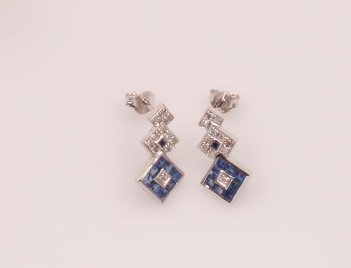 Orecchini pendenti con diamanti e zaffiri