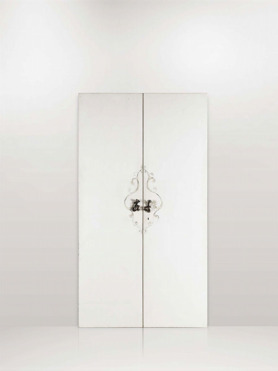 Coppia di porte con struttura in legno di frassino laccato. Maniglie in bronzo e decori realizzati su disegno di Lucio Fontana. Certificato di autenticità Archivio Fontana.