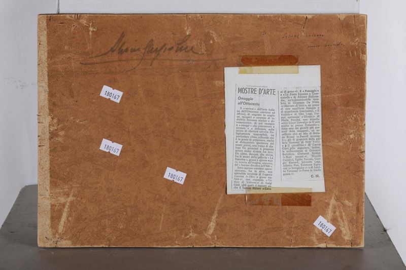 olio su cartoncino, cm 34,4x24,6, firmato in basso a sinistra