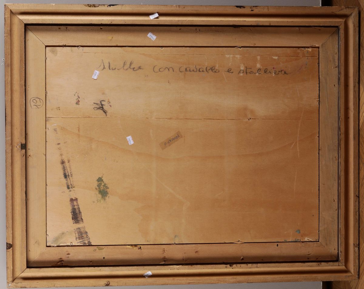 Guido Guidi (1901-1998) Stalla con cavallo e stallieri