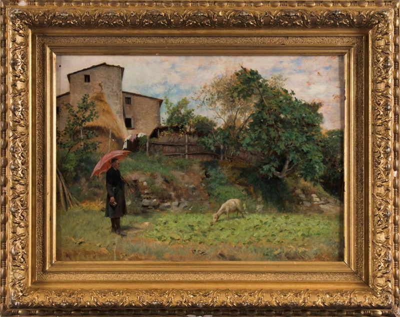 olio su tavoletta, cm 31,5x42,5, firmato in basso a destra