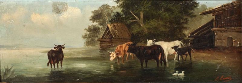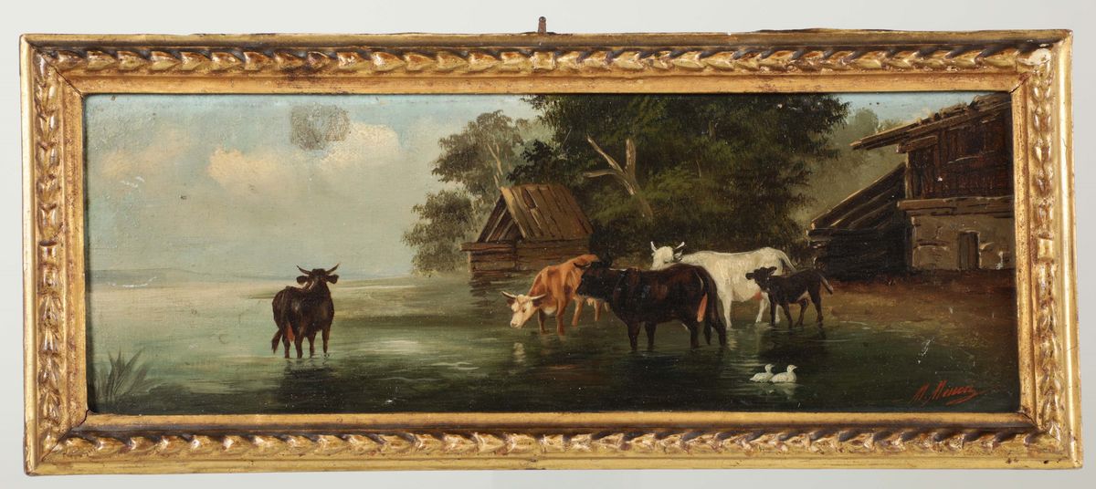 Michelangelo Meucci (1840-1909) Scena campestre con mucche