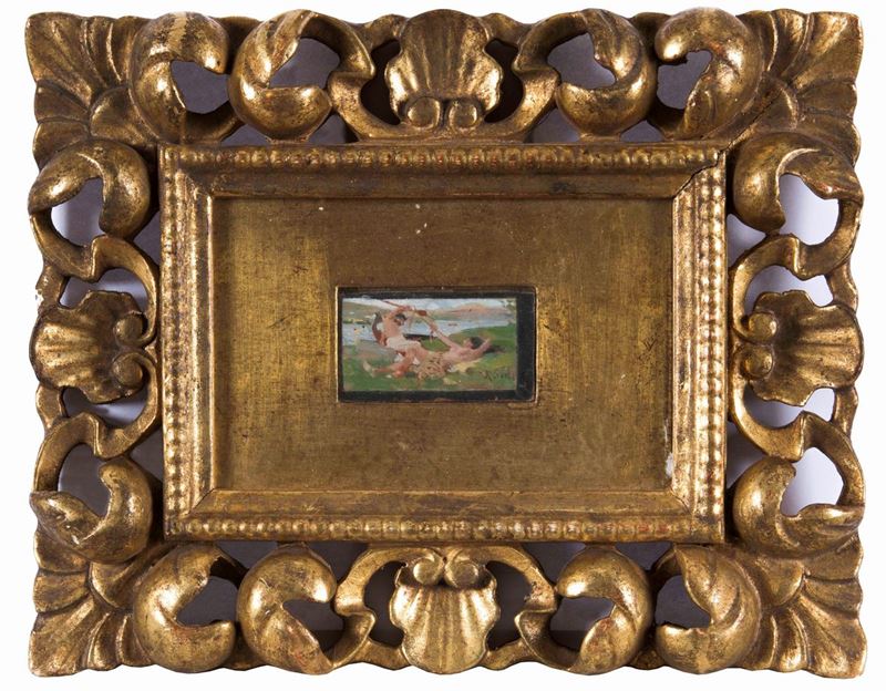 olio su tavoletta, cm 3,5x6, firmato in basso a destra