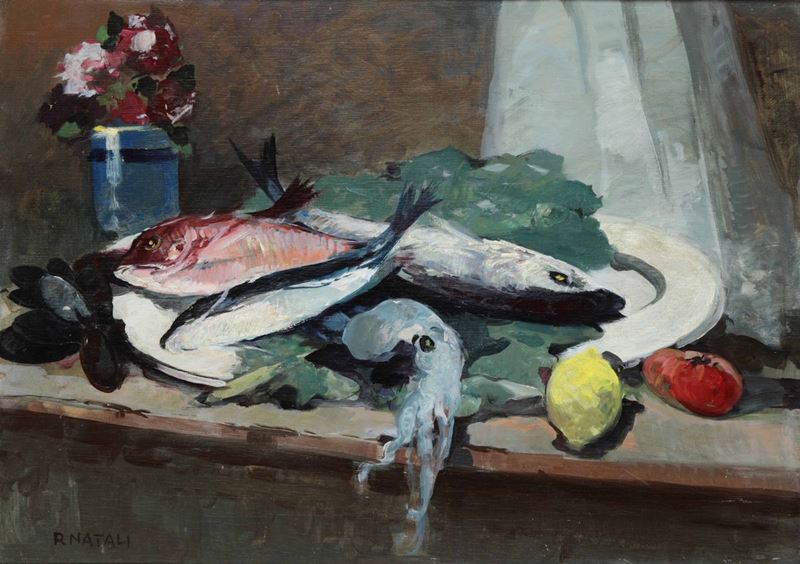 olio su tavola, cm 70x50, firmato in basso a sinistra