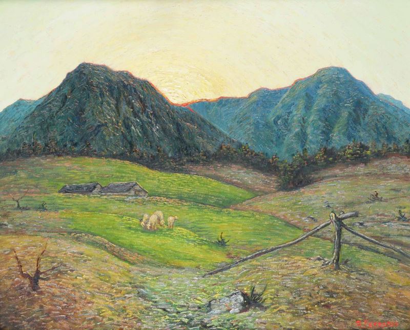 Severino Ferraris (1903 - 1978) Tramonto sulle Alpi