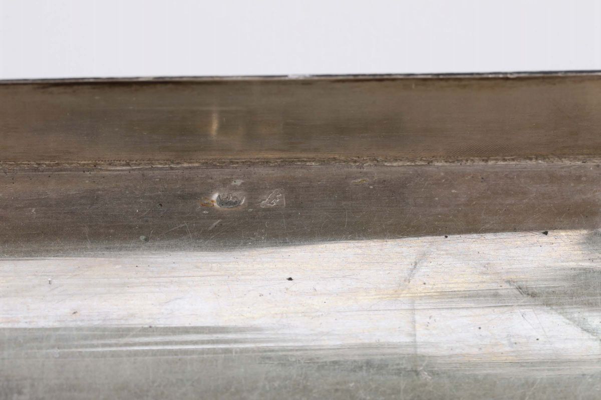 Forma rettangolare con coperchio incernierato. Corpo cesellato con motivi animali, vegetali e floreali
