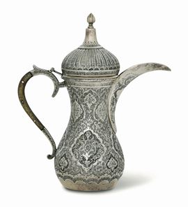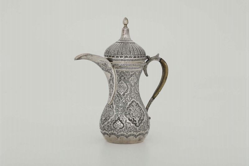 A coffee pot in molten, embossed and chiselled silver, Ottoman Middle-Eastern art (Persia?) 19th-20th century