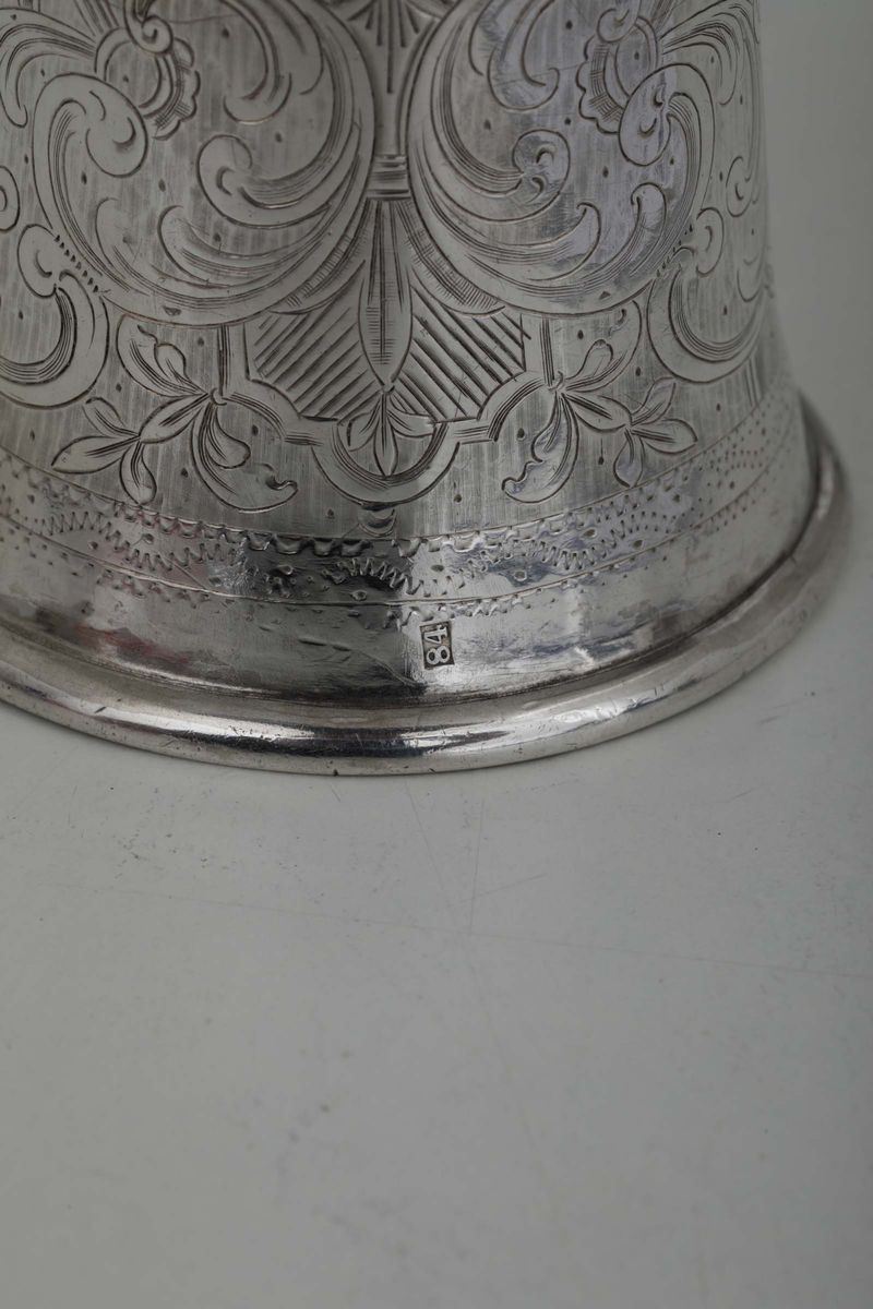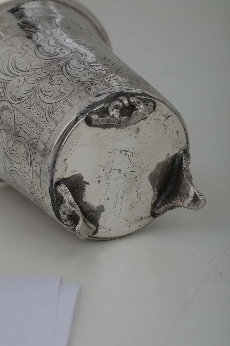 A glass in molten, embossed and chiselled silver. Band with a spiral decor. Russia, 19th century
