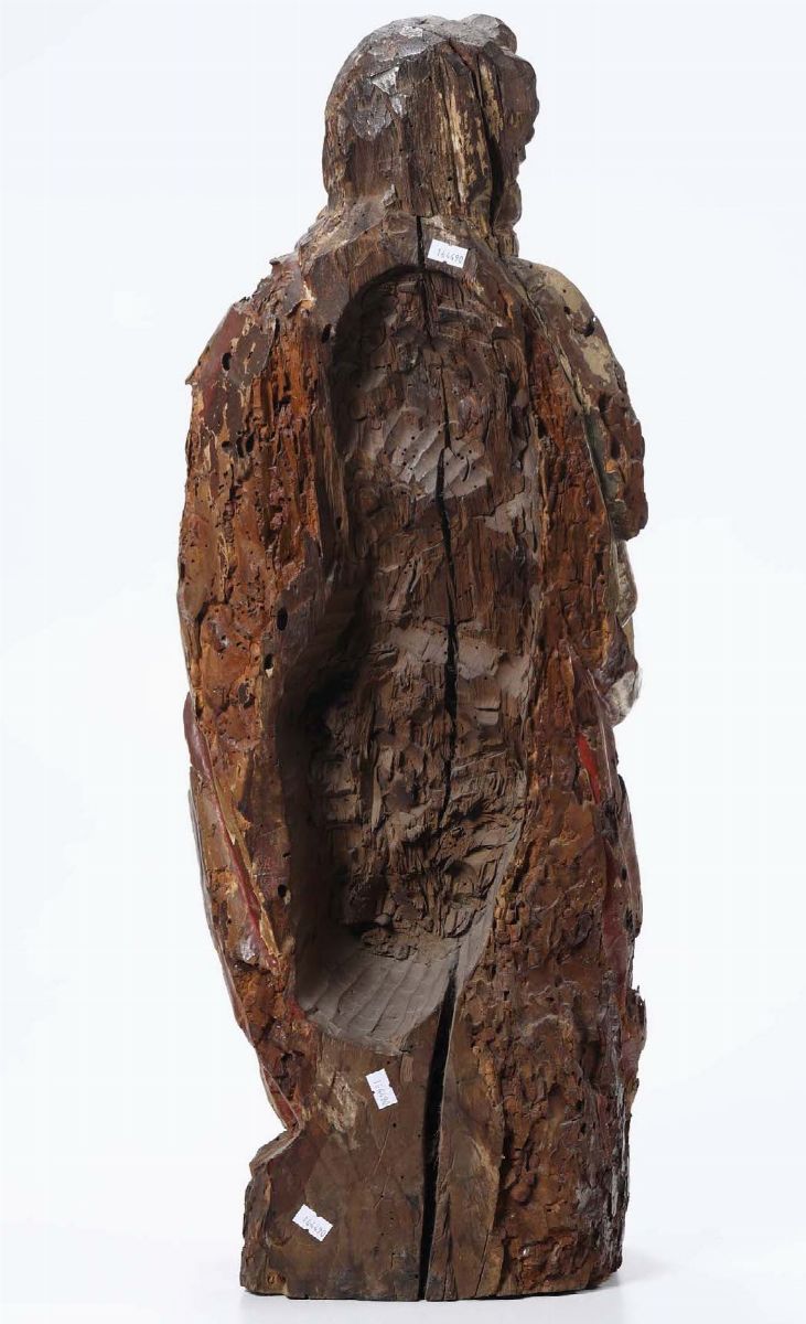 A sculpture depicting Saint John the Evangelist in polychrome and gilded wood, Renaissance sculptor active between Lombardy [..]