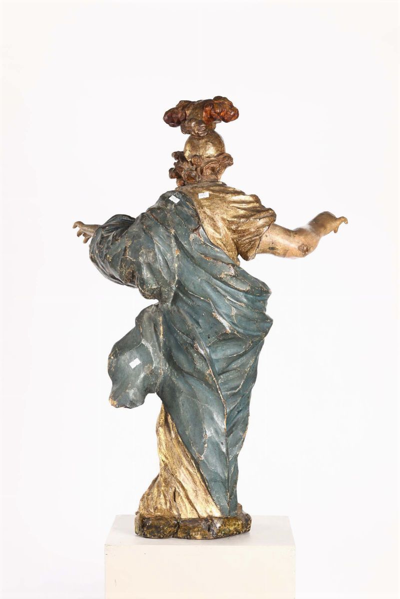 A sculpture in polychrome wood depicting a Saint. Italian Baroque art from the 17th-18th century