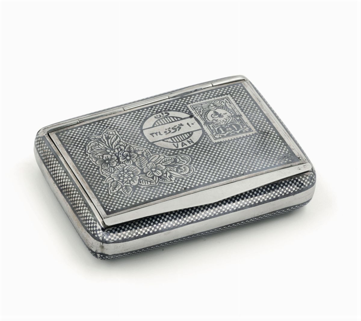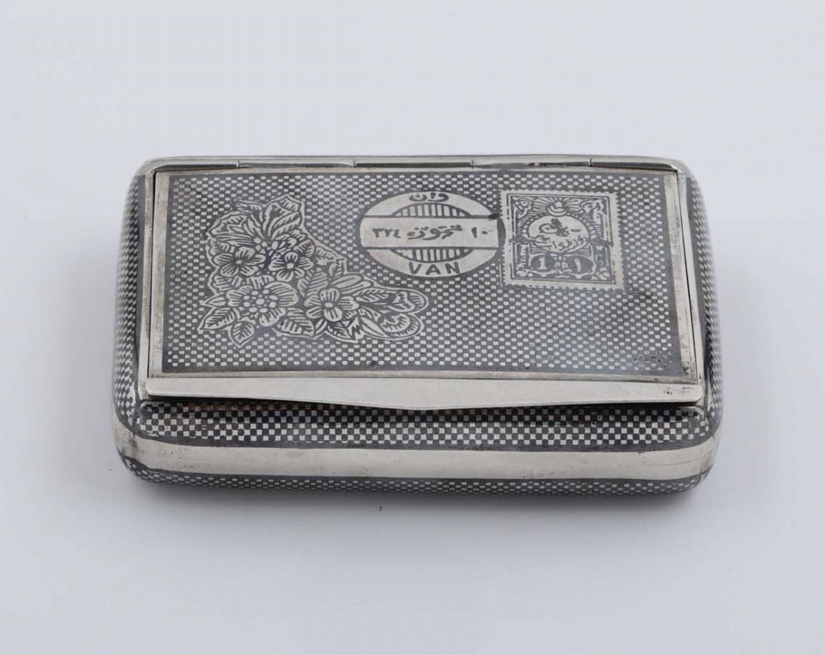 A snuff box in silver an niello. Turkey, 20th century
