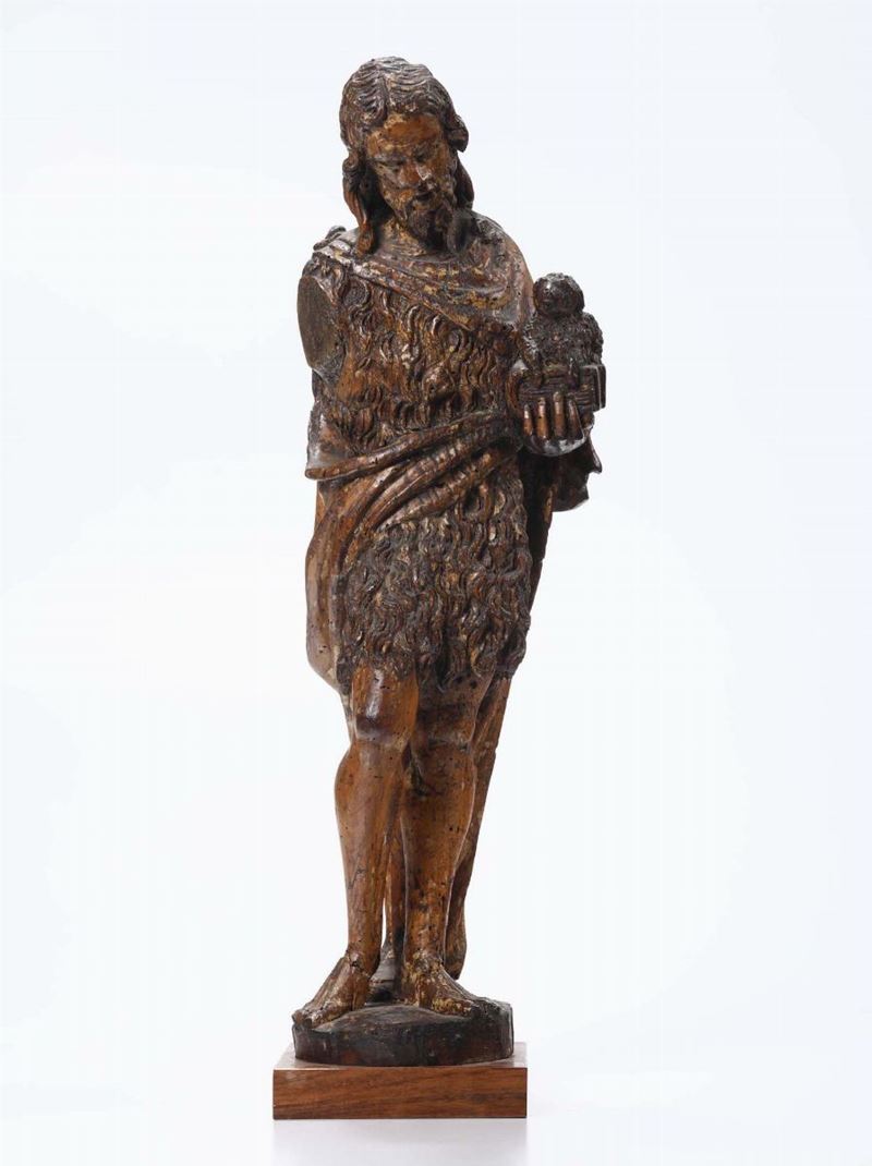 A wooden sculpture depicting Saint John the Baptist, Italian art from the 16th century