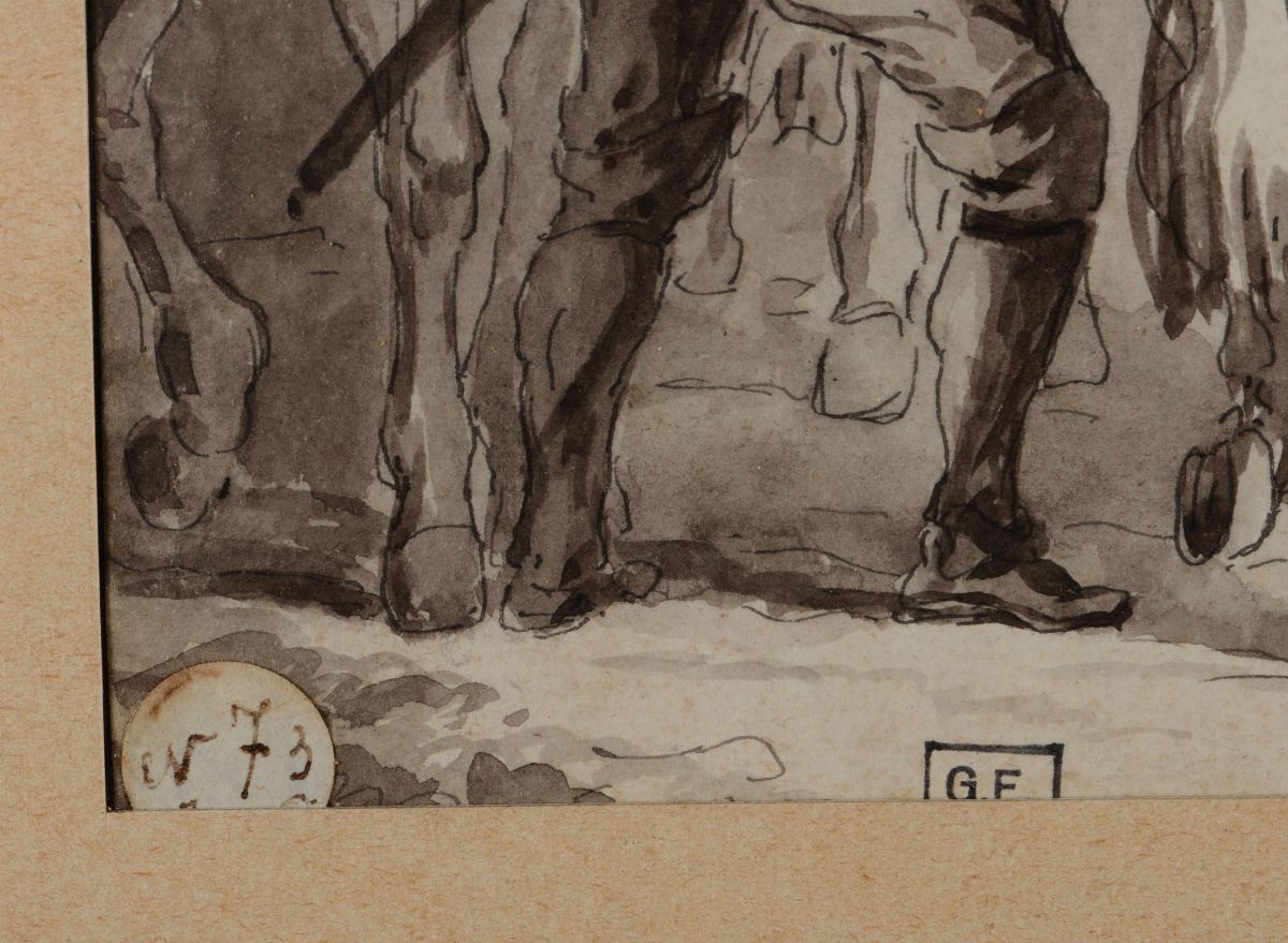 Claude Michel Hamon Duplessis (circa 1791-1799) Cavalieri in sosta in riva ad un fiume