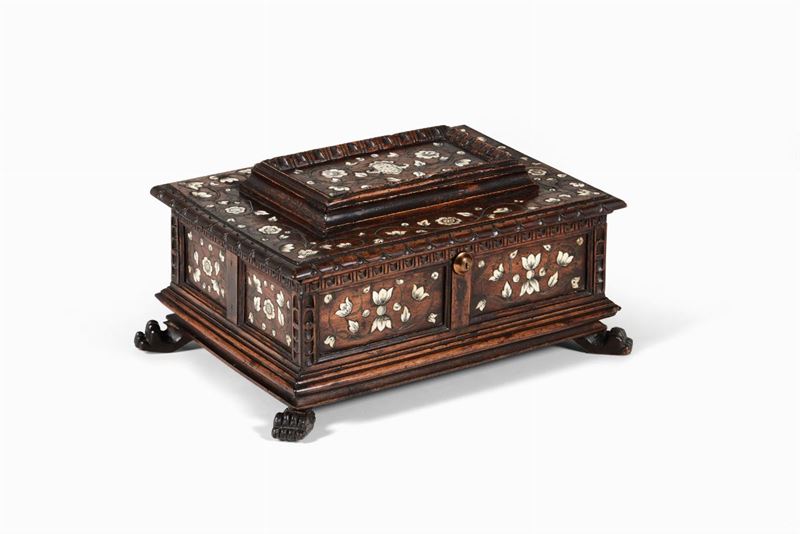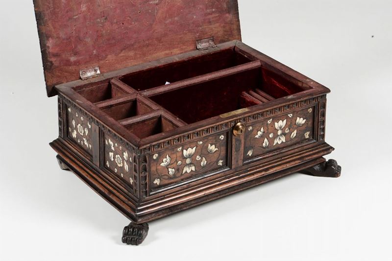 Confanetto in noce intarsiato in avorio, XIX secolo