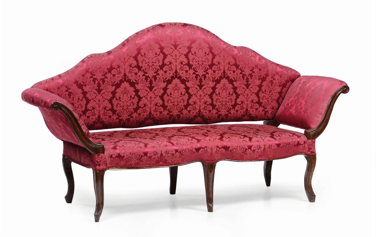 Divano luigi XV in noce intagliato, XVIII secolo