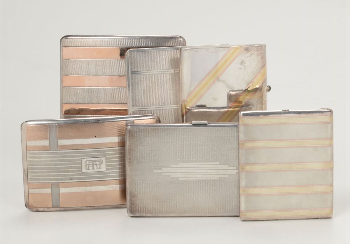 Gruppo di sei portasigarette in argento, XX secolo