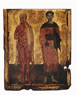 Icona in legno fondo oro raffigurante Santi, XVII secolo