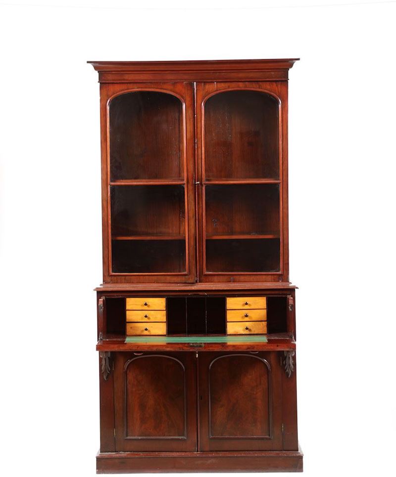 base a due ante pannellate, calatoia superiore celante sei cassettini e vani porta documenti, alzata a due ante a vetro, cm 106x47x205