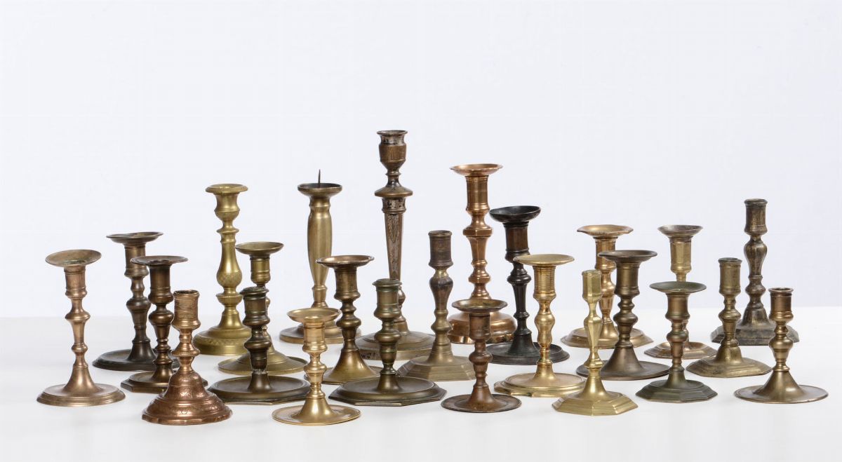 Lotto composto da 25 candelieri domestici antichi, XVII-XIX secolo