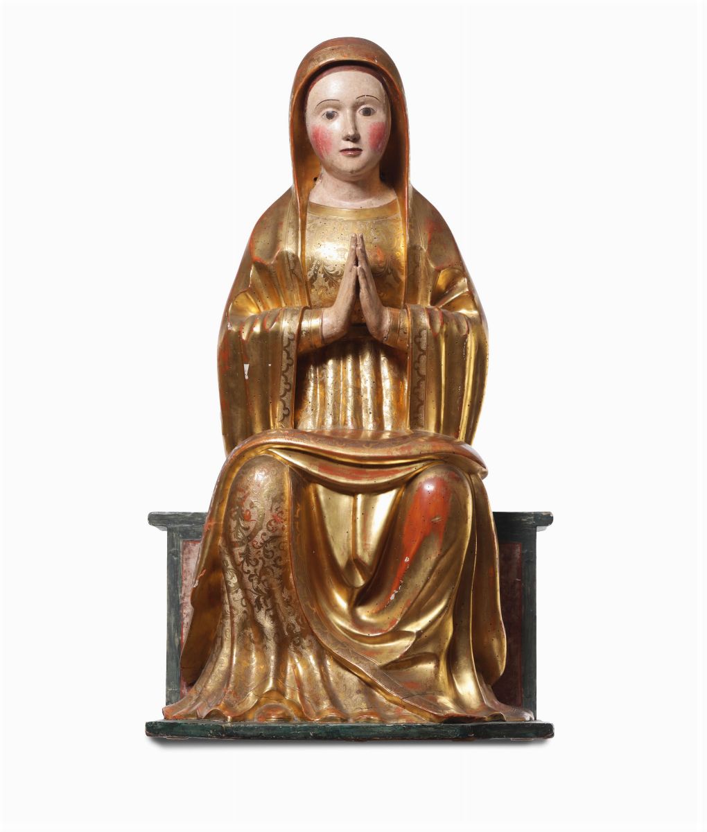 Madonna orante in legno dipinto e dorato. Scultore veronese del XVI secolo