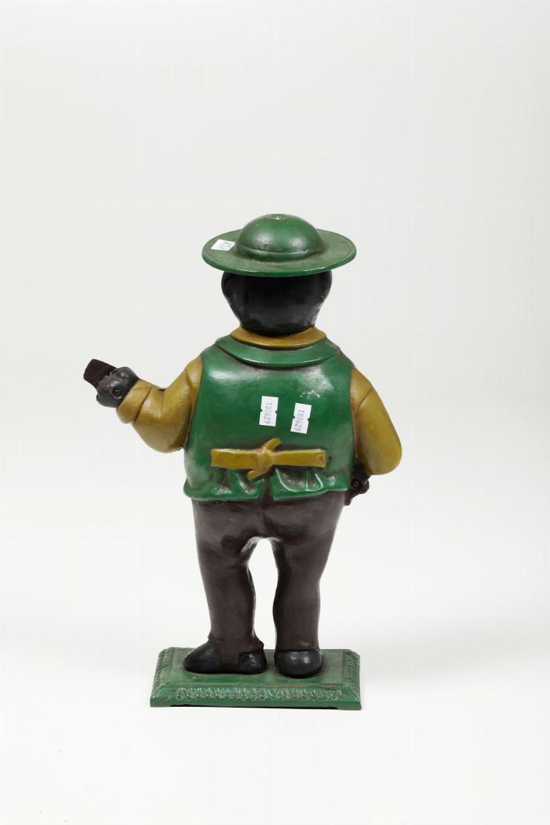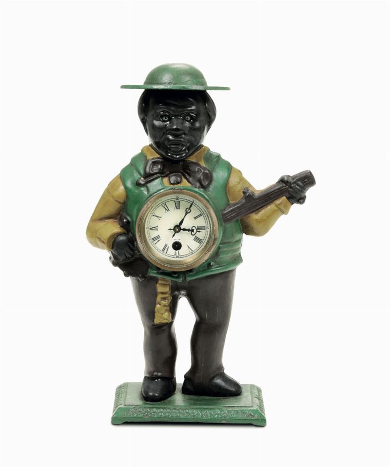 Pendola da tavolo a guisa di moro in metallo dipinto, XX secolo