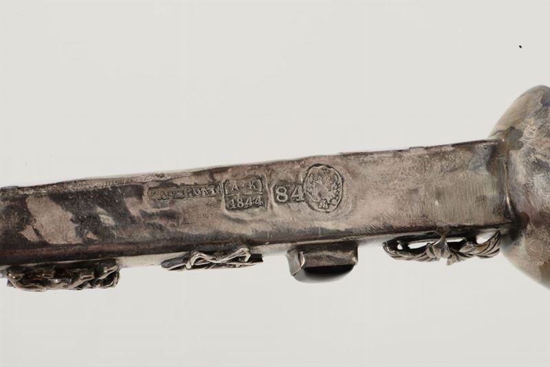 Puntatore Yad in argento sbalzato e cesellato. Bolli non pertinenti per il 1844. Manifattura del XX secolo